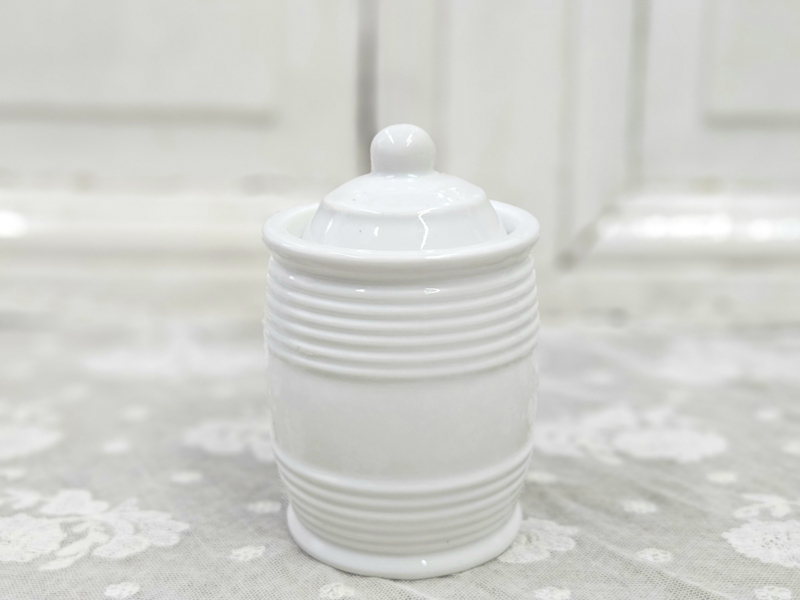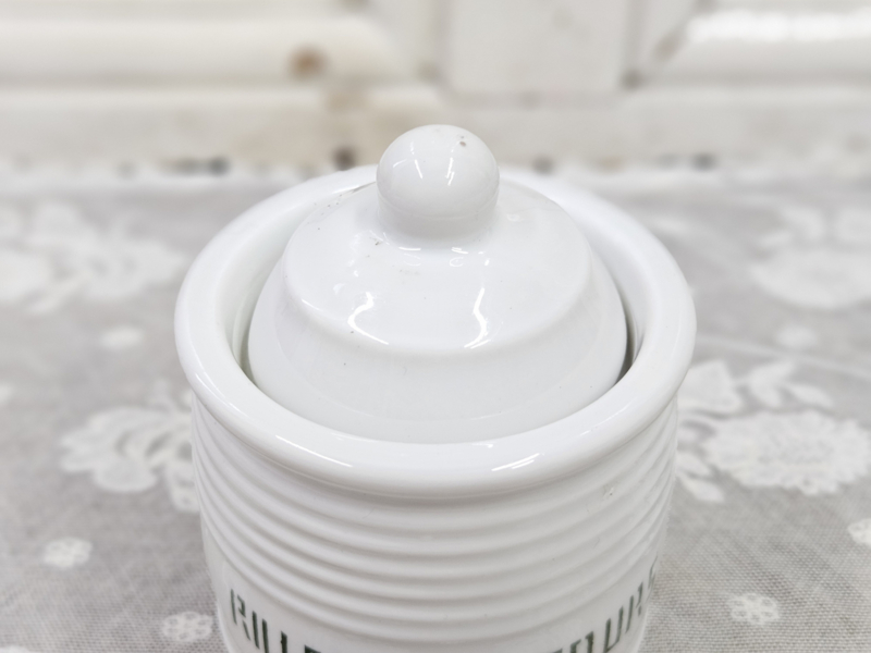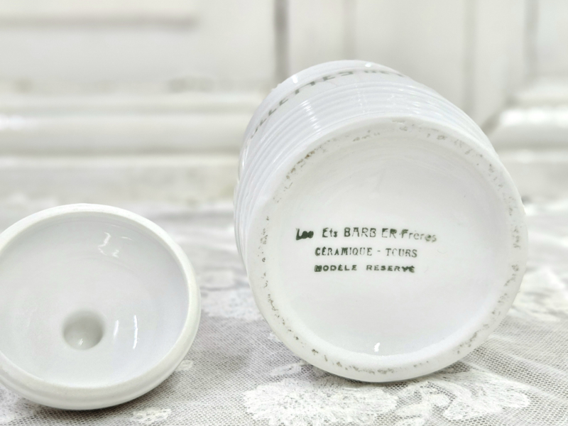 Oud potje waar vroeger een cultureel beschermd product in zat nl. varkensreepjes gesmoord in vet, op smaak gebracht met specerijen en soms met witte wijn uit de Touraine regio. Potje is in tiptop staat.
