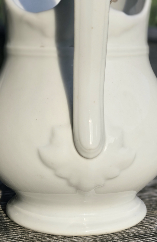 Puntgave witte waterkan, geen chips en/of haarlijnen. Weerkaatsing op de foto's door het licht.